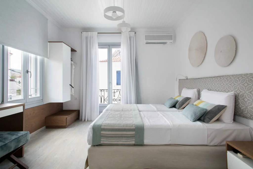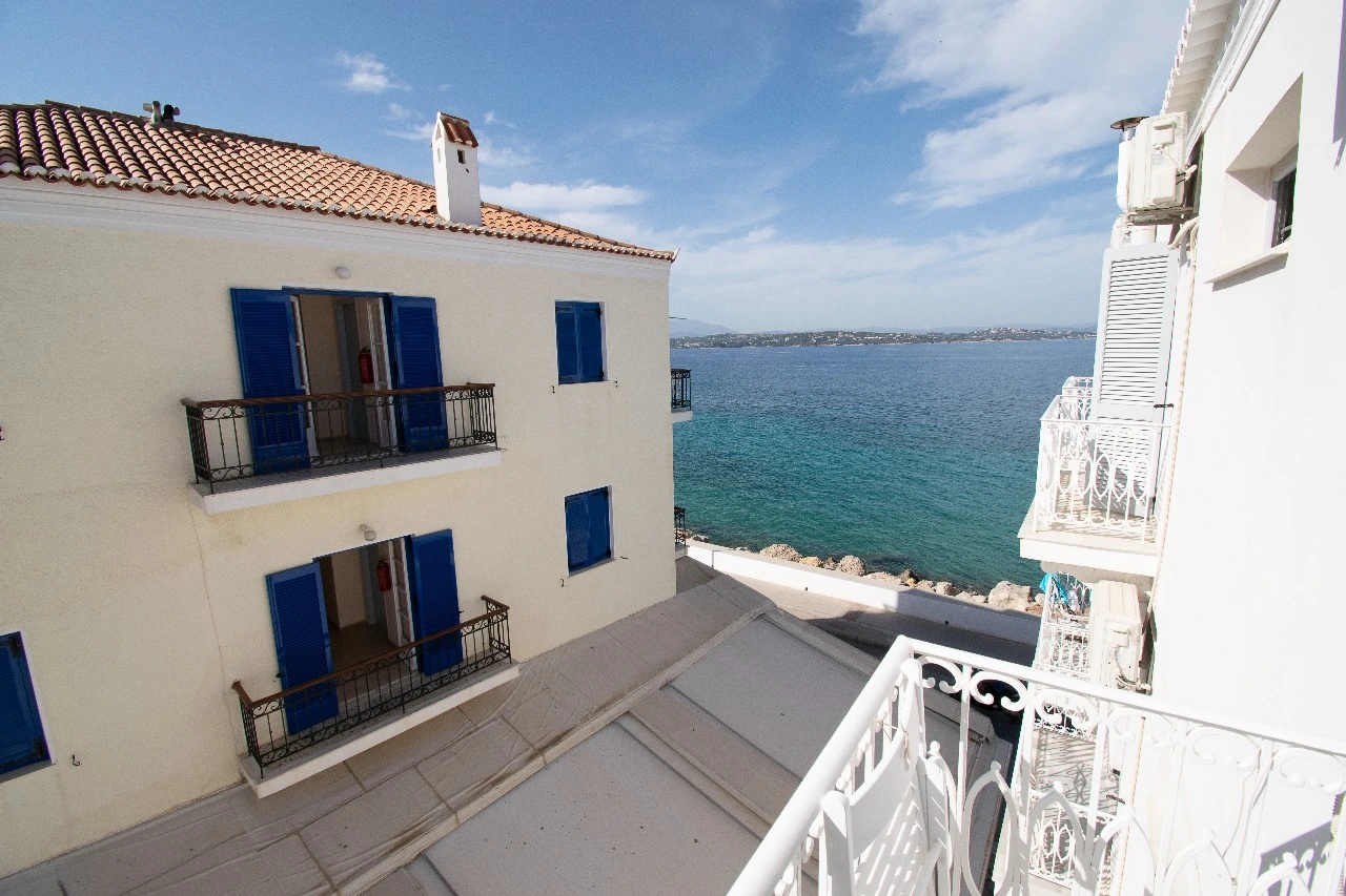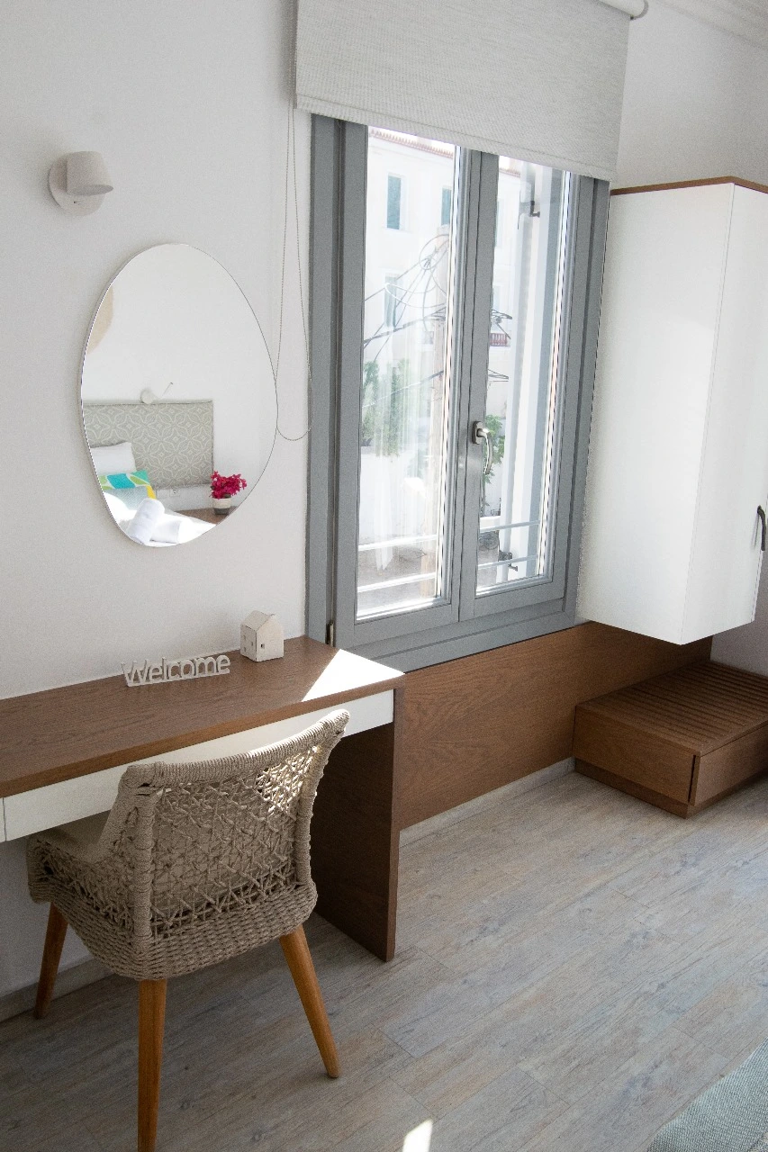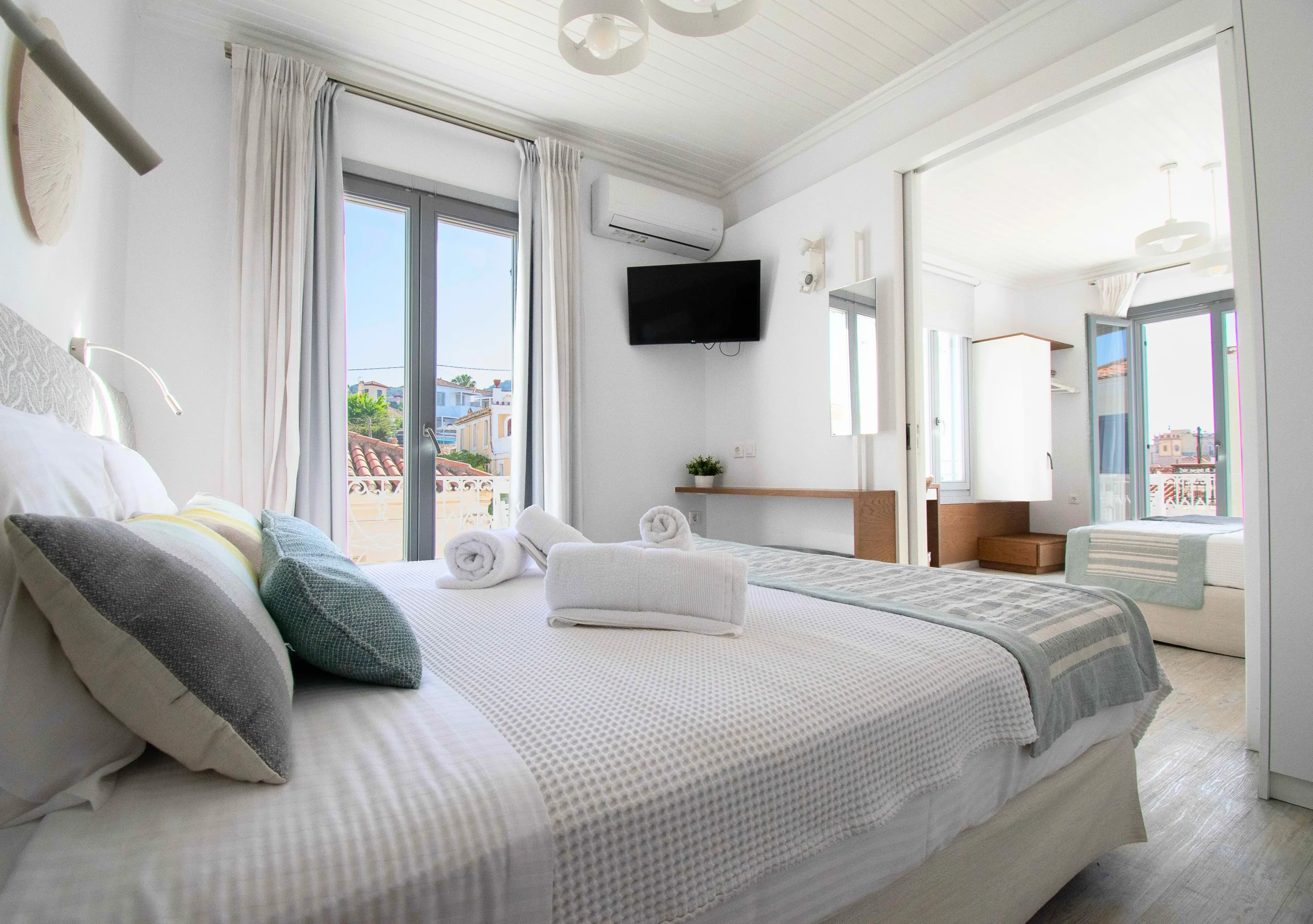 There are two furnished balconies, one of which overlooks a picturesque traditional pedestrian street of Spetses and partially towards the sea, while the other balcony and window have an exclusive view of the pedestrian street.